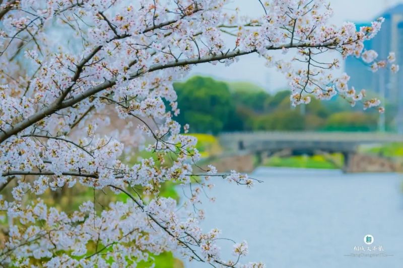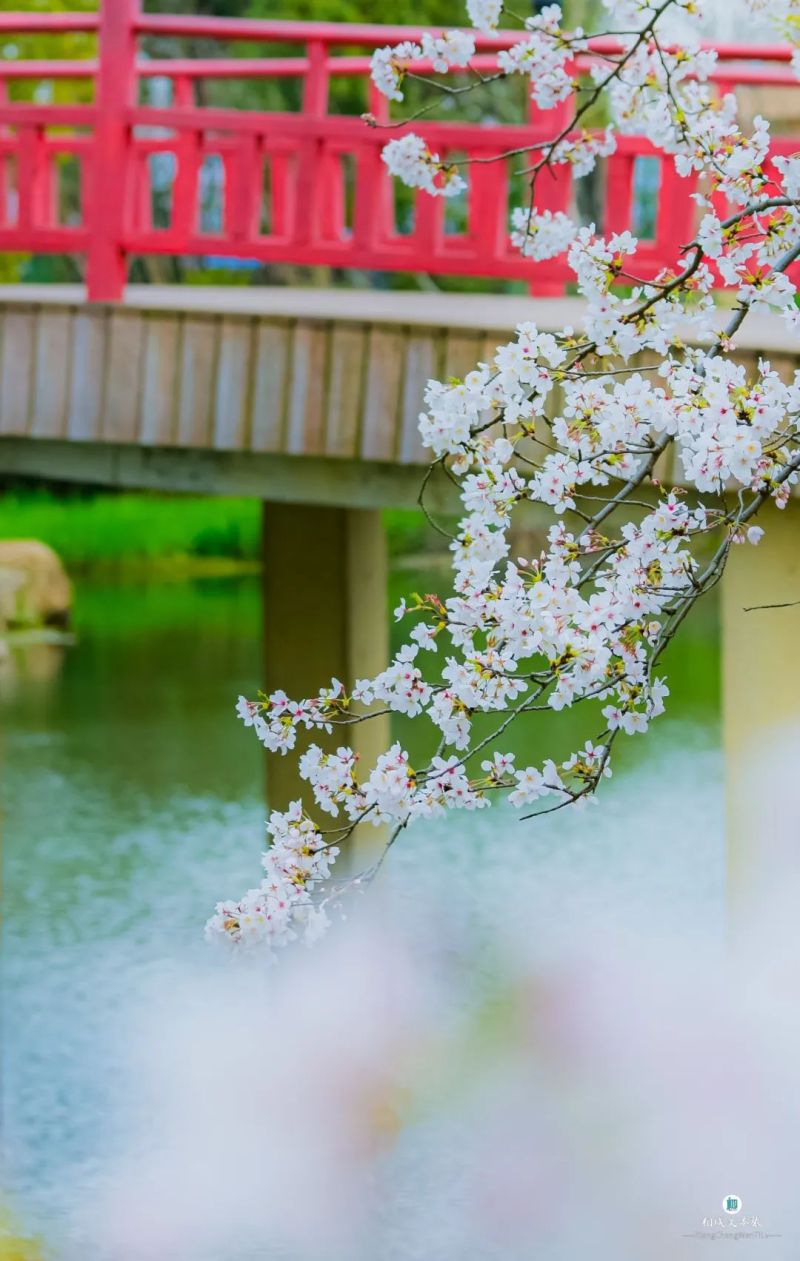 春天锦绣,正是樱花当令,樱花园里,粉白樱花盈盈而立,与小桥、流水相映成趣,当春风微漾,花瓣漫天飞舞,目之所及,皆是浪漫。
