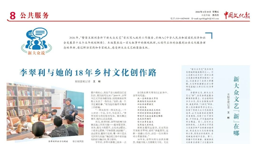 什么是新大众文艺?其对公共文化服务带来哪些影响?对此,记者采访了北京大学教授、文化和旅游部北京大学研究基地(公共文化)主任李国新。