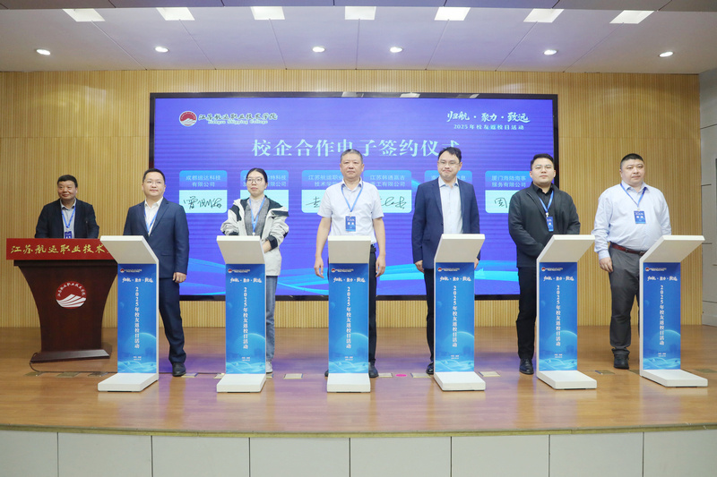 产教融合是推动职业教育高质量发展的关键环节。活动现场举行了校企合作签约仪式,副校长赵彤代表学校与南京金希普船舶管理有限公司等10家企业签署合作协议。合作企业将为学校提供实习岗位、共建实训基地,学校则为企业输送高素质技术技能人才,实现校地共生、校企共赢。