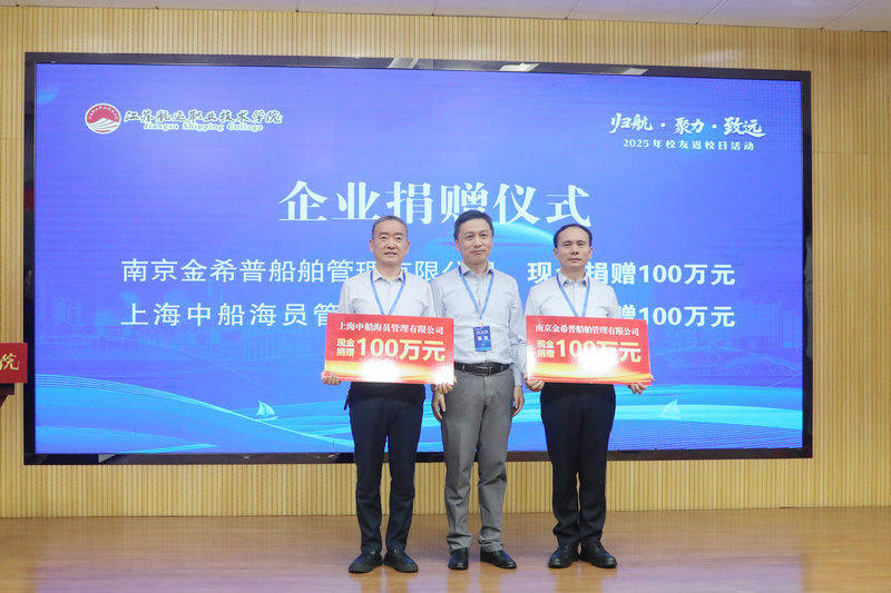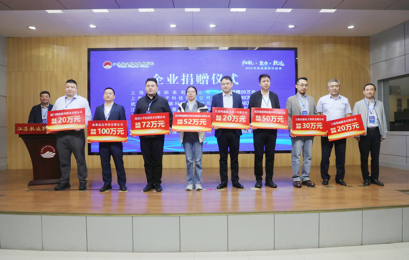 怀着回馈母校的赤子之情,10家签约企业现场进行了集中捐赠。其中,南京金希普船舶管理有限公司、上海中船海员管理有限公司分别捐赠现金100万元;武汉赛思博睿德科技有限公司等8家企业分别捐赠价值20万元至100万元不等的软件或设备,累计捐赠价值丰厚。纪委书记朱宝华、副校长王琪代表学校接受捐赠。这些捐赠将用于奖励优秀学子、支持科研创新、改善教学条件,为学校“新双高”建设注入强劲动力。
