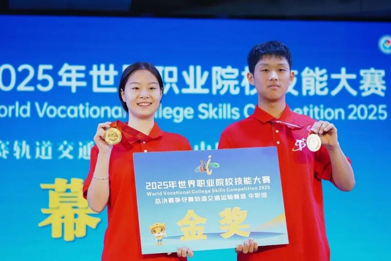 在世界职业院校技能大赛总决赛——“轨道交通运输”赛道中职组的激烈角逐中,江苏省无锡交通高等职业技术学校的夏梦珍、董晨曦两位同学,在李俊、周俞辰老师的耐心指导下,一路稳扎稳打、默契配合,最终从全国73支强劲队伍中脱颖而出,成功摘得金奖!