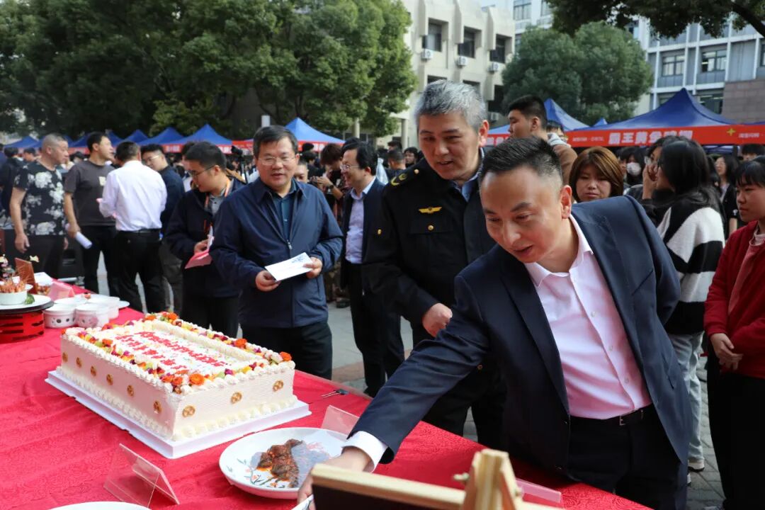 李进宣布第八届美食节正式开幕。开幕式上,范次猛既肯定了美食节的文化意义,也强调了食品安全与创新精神的重要性。市场监督局姚局长为学校6名学生颁发食品安全监督员聘书,见证市场监督管理局与学校共建食品安全监督体系的里程碑;企业代表饿了么进行发言,展现了行业发展的活力,也坚定了学校深化合作的信心,同时宣布学校食堂正式上线饿了么平台,师生们可享受美食线上服务。