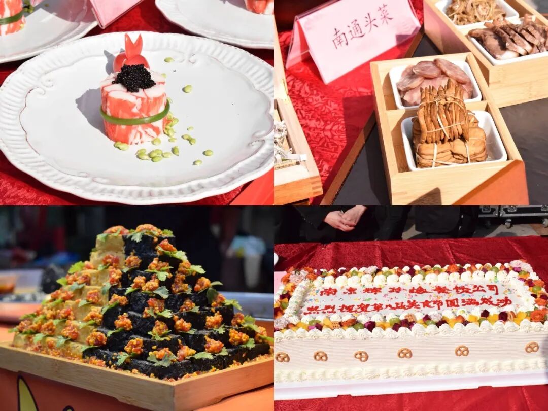 活动现场,人声鼎沸、锣鼓喧天。各食堂分别展示各自特色菜,其中,由江苏一城謇餐餐饮管理有限公司提供的南通头菜、生生不息、五山叠翠、海权一锅、梅欧斗艳、濠水碧波盅等六道菜品别具特色。此外,现场地域饮食文化创意美食引爆味蕾。徐州烤肉筋、陕西肉夹馍、老长沙臭豆腐、冰糖葫芦等小吃摊位引得师生纷纷驻足。非遗传承人现场绘制的糖画糖人在阳光下透亮如艺术品,摊位前,老师傅舀一勺琥珀色的糖浆,手腕轻抖,糖丝如金线般在石板上游走,转眼间活灵活现的龙形糖画便跃然纸上。