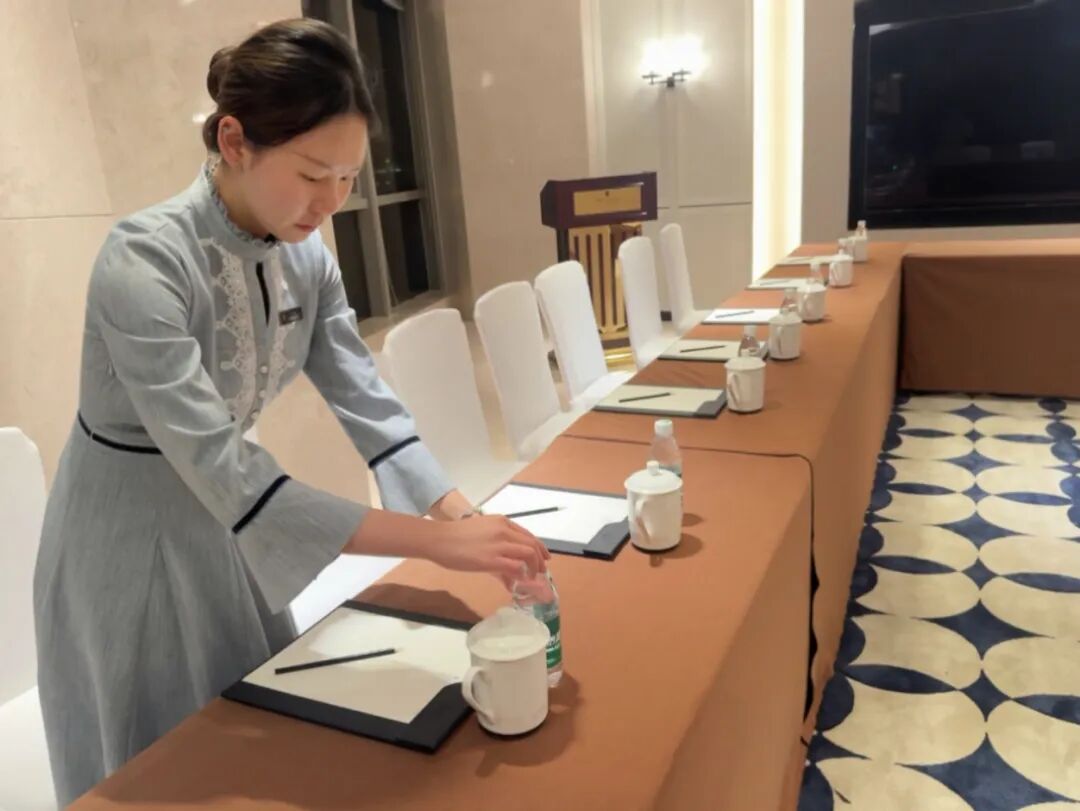 在服务接待岗位上,她们仪态端庄、笑容亲切,主动引导参会人员有序入场、就座,耐心解答各类咨询,细致做好引导衔接工作,用温暖的服务传递着青春温度,展现了空乘专业学子的良好礼仪素养;在会场保障工作中,她们严谨细致、一丝不苟,提前检查会场设施、整理会议物资,全程值守会场,及时响应各类需求,确保会议流程顺畅有序,用严谨负责的态度筑牢盛会保障防线,践行了“后勤不后、保障有力”的工作理念;在餐饮与房务管理岗位上,她们精益求精、务实尽责,严格按照两会保障标准,细致做好餐饮配套服务、客房清洁整理等工作,紧盯每一个细节、落实每一项要求,全力为参会人员营造舒适、便捷的环境,用实干担当赢得了相关部门和参会人员的认可与好评。