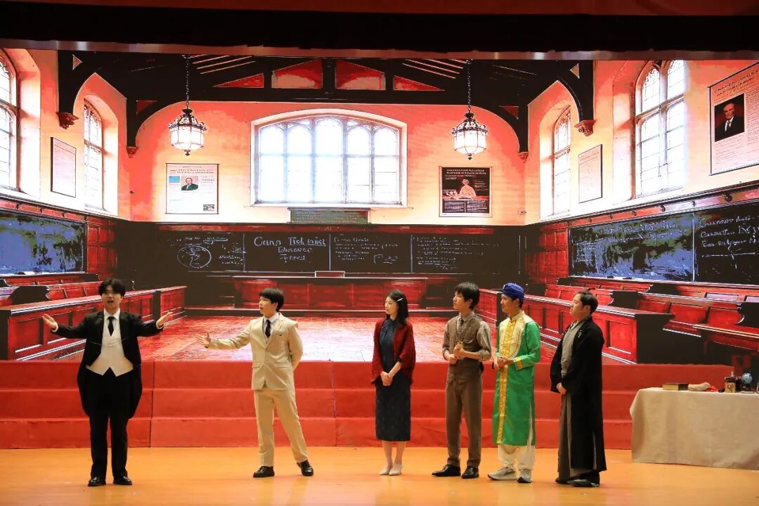 鹿鸣演说家社团带来诗朗诵《这盛世如您所愿》,深情致敬革命先辈,展现了新时代青年对祖国繁荣昌盛的自豪与担当;国学堂的原创话剧《李约瑟之问》围绕“中国古代科技贡献与近代科学革命”的经典命题展开跨越时空的对话,引发师生对科技与人文关系的深刻思考;最后,校春之声合唱团以温暖动人的歌声演绎了《一荤一素》,用细腻的情感为开幕式画上圆满句号。