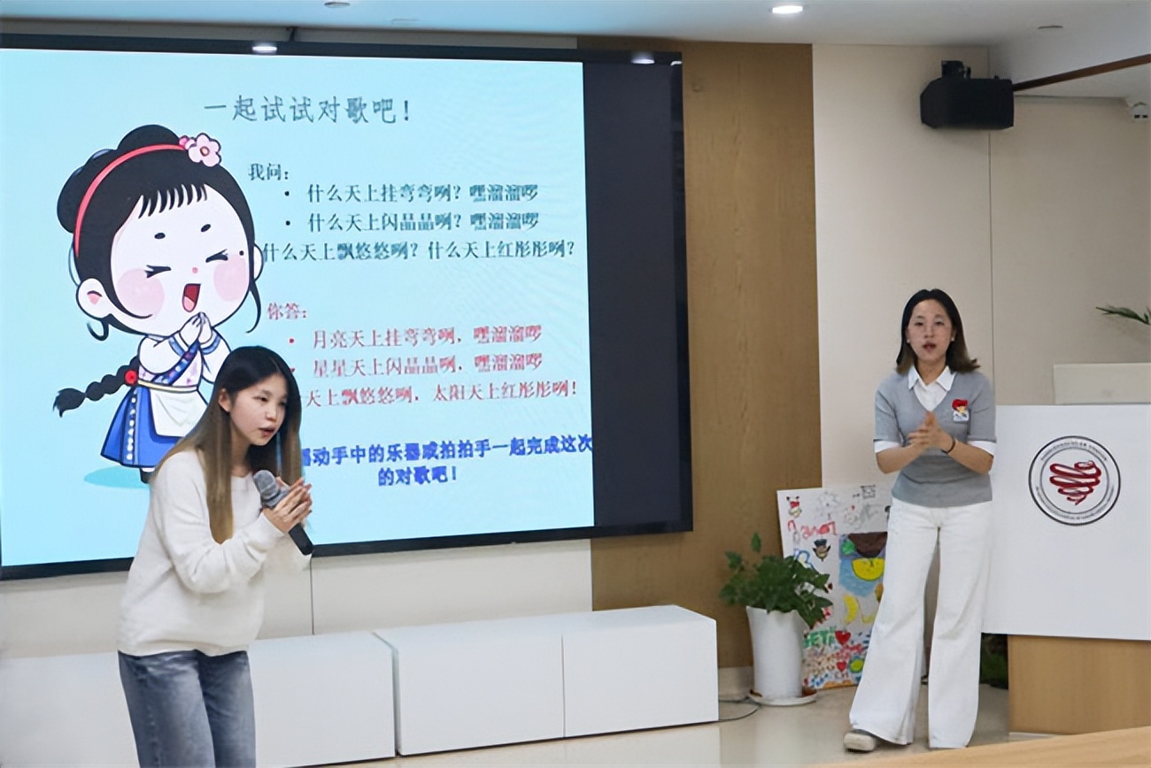 在心血管中心病房,师生代表探望“心佑工程”先心病患儿,送上中国地图、文化图书与玩偶等暖心礼物,用亲切陪伴缓解孩子们的治疗压力。随后,“音悦佑心--唱家乡的歌”音乐课温情开讲,同学们精心设计,把自己家乡的歌融入课堂,江苏《无锡景》、湖南《浏阳河》、广西《对山歌》、青海与新疆民歌轮番唱响,民族乐器演奏、民谣教唱、小合唱等环节趣味十足。患儿与南艺学子围坐一堂,在歌声与欢笑中感受艺术的治愈力量,让音乐成为跨越病痛的温暖桥梁。朱音璇同学深有感触:“这次走进南医大二附院的劳动实践,让我重新理解了劳动的意义。专业所学不再停留于课堂,而是在服务中产生真实价值;劳动与艺术在这里交汇,也让我更加坚定用音乐温暖他人的方向。”