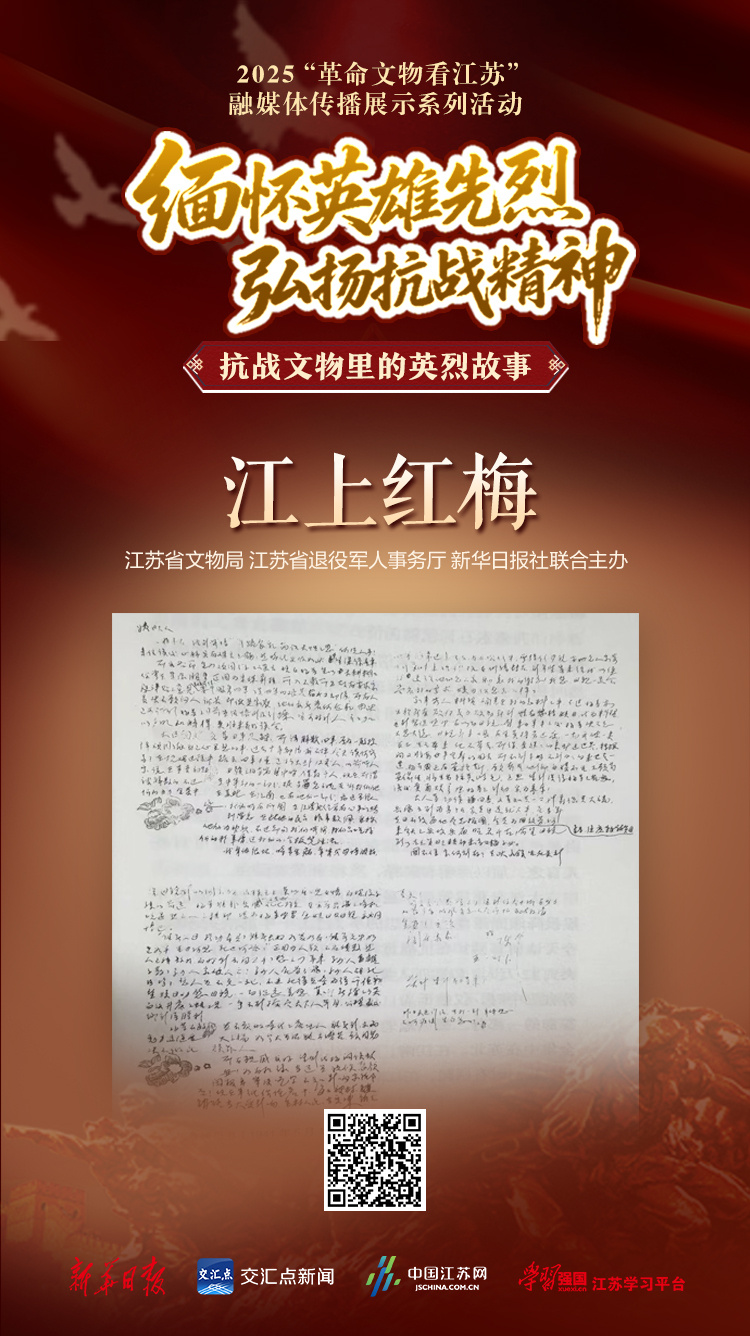 八十载光阴流转,今日长江之上,万吨货轮往来穿梭,润扬大桥凌空飞架。孙晓梅战斗过的航道,正载着新时代的巨轮浩荡前行,而那封浸透家国情怀的红色家书,也依然传递着信仰的力量,这份在国家危难之际挺身而出的担当精神,这份将个人命运与民族大义紧密相连的家国情怀,将永远激励我们砥砺前行,江上红梅永不凋零,抗战精神永放光芒!