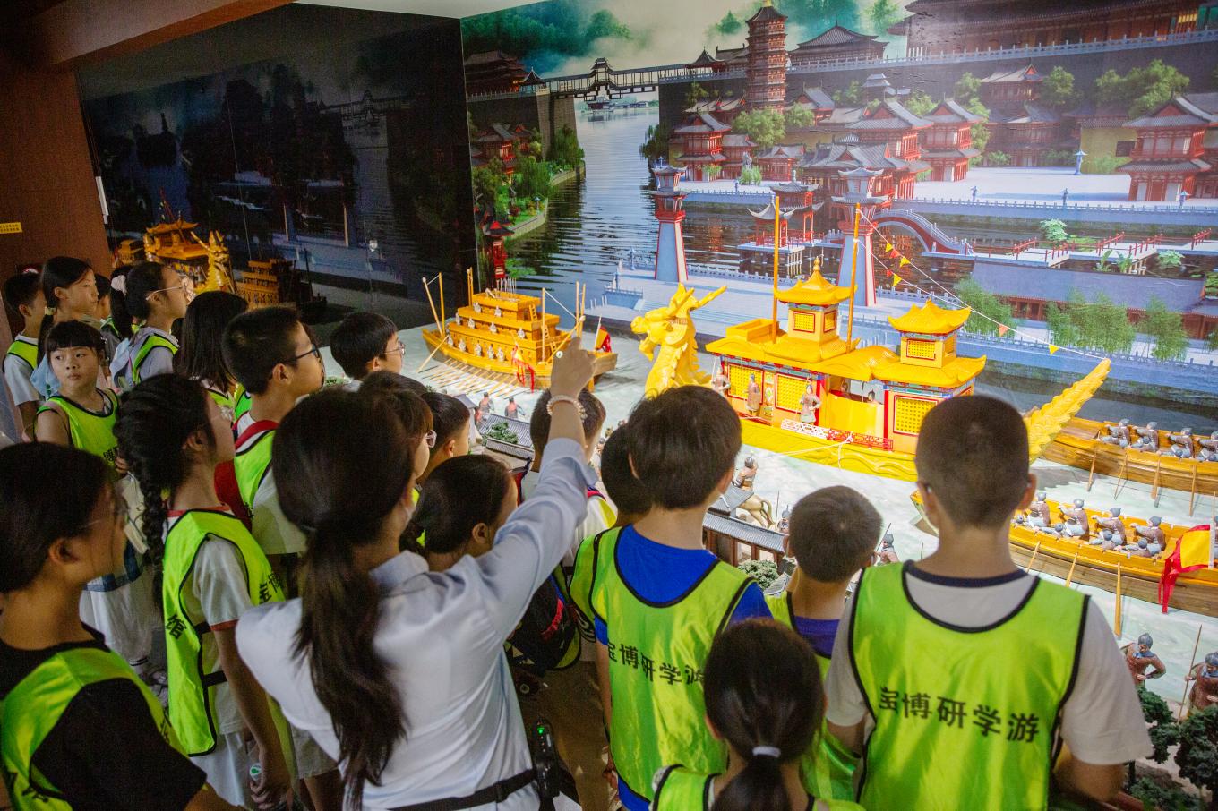 新华日报·交汇点讯 今年暑期,宝应博物馆成功举办“博物馆里的古今对话”系列研学游活动。该系列围绕“花团锦蹴”“金石为开”“钟鸣鼎食”“春华秋实”“瓷韵匠心”五大主题,通过文物探秘与沉浸体验,引领青少年在跨越时空的对话中感知传统文化智慧。
