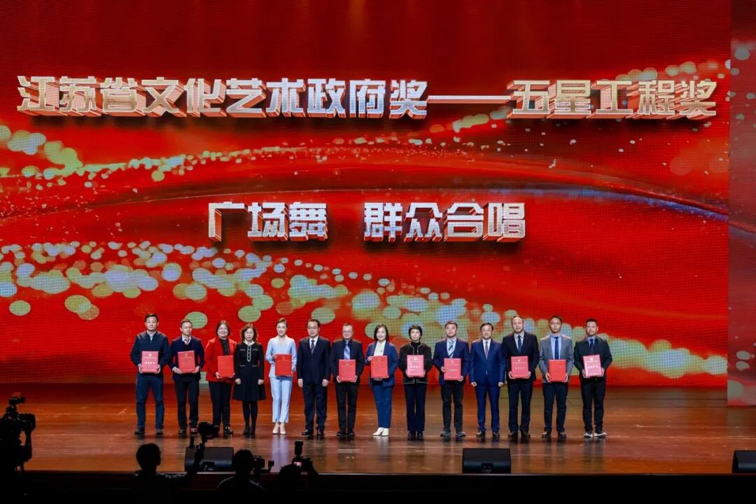 省文旅厅党组书记、厅长杨志纯,省人社厅党组书记、厅长朱从明,省文旅厅党组成员、副厅长钱宁共同颁发五星工程奖(广场舞、群众合唱)奖项。