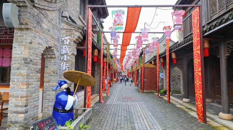 步入小镇,古韵盎然的牌坊、飞檐青瓦的建筑与石板铺就的街巷,瞬间将人带入戏曲氛围之中。主题商业街区中,淮剧元素随处可见——静谧的书屋、创意文创店、特色餐饮与高端民宿交织出兼具烟火气与文艺感的体验场景。游客不仅可以选购淮剧脸谱明信片、戏服等衍生品,还能在主题餐厅、传习所、非遗手作等多元业态中沉浸式感受戏曲文化的生动表达。