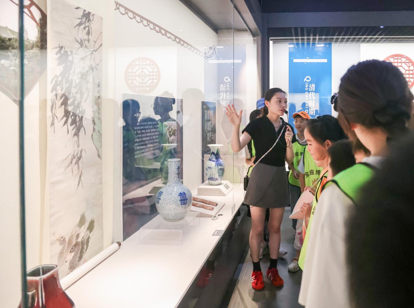 活动以馆藏文物为线索,生动解读节气文化内涵。从“夏至”的麋鹿角亚化石,到“大暑”的黄釉瓷枕,从“立秋”的《秋意图》到“白露”的青花芦雁印泥盒,每件文物都成为一扇窗口,让孩子们直观理解物候变化,感受古人的生活智慧与文化传承。
