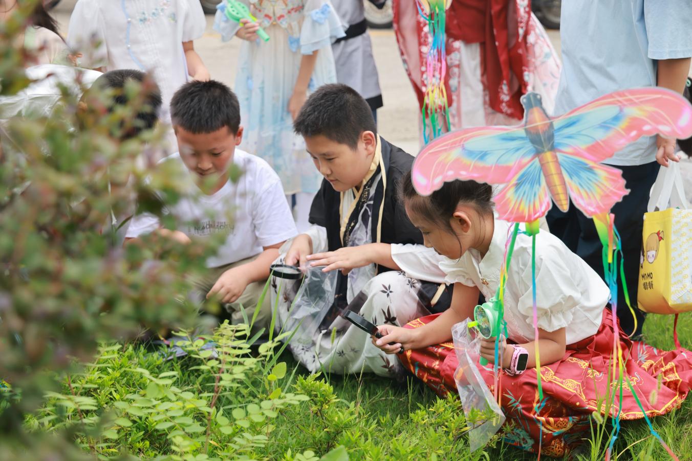 活动突破场馆限制,将课堂延伸至荷园、古运河畔等户外场所。孩子们在夏至寻并蒂莲,在白露割稻挖薯,在秋分观察叶色、体验竖蛋挑战,在真实自然环境中感受万物随节气更迭的生命律动。