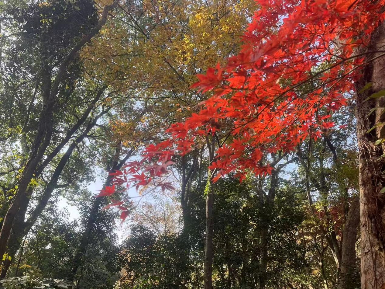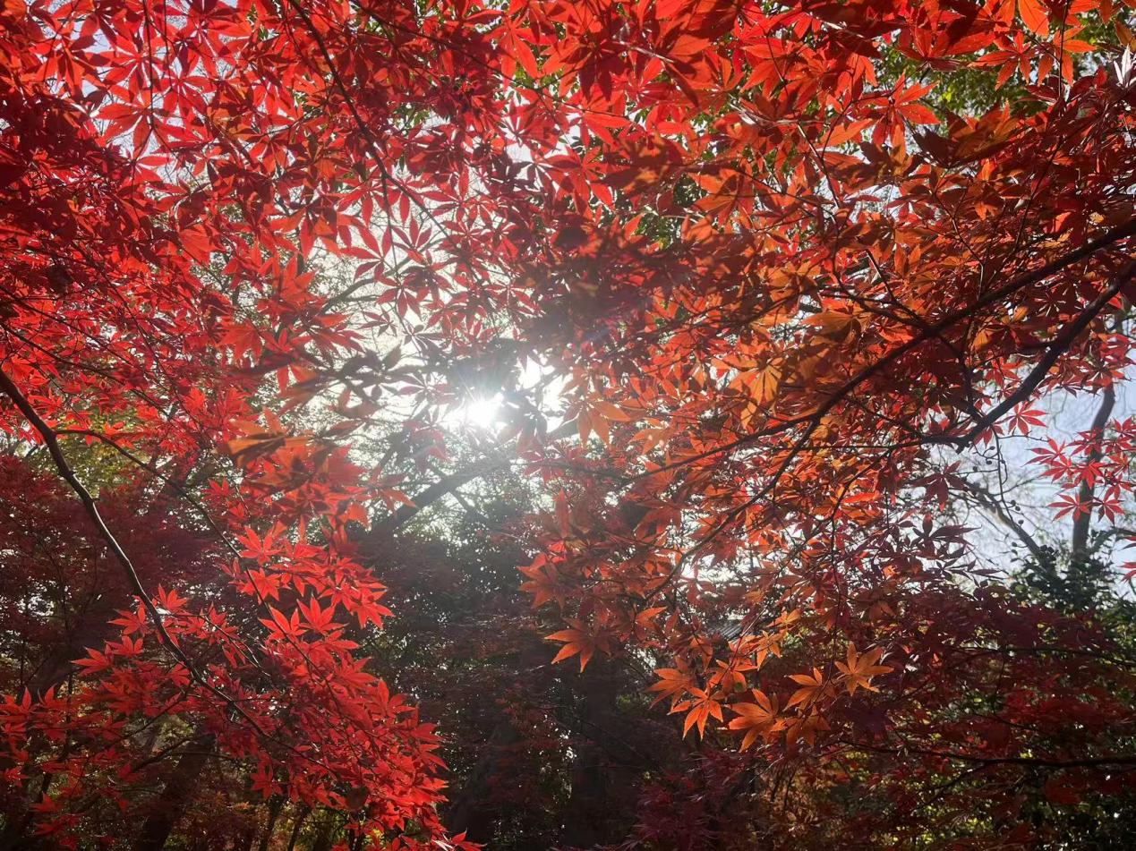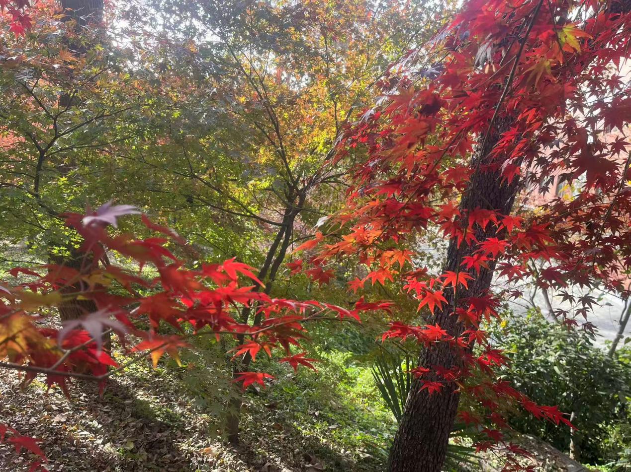 随着气温逐渐走低,南京中山植物园北园的红枫岗迎来了热烈绚烂的童话世界。11 月 28 日,记者实地探访发现,这里 5000 平方米的山坡上,100 余种槭属植物褪去翠绿,换上五彩华服,火红、橙红、绛紫、明黄的叶片层层叠叠,在冬日阳光的映照下熠熠生辉,宛如不慎打翻的调色盘,吸引众多游客与摄影爱好者驻足打卡,开启一场浪漫的冬日赏枫之旅。