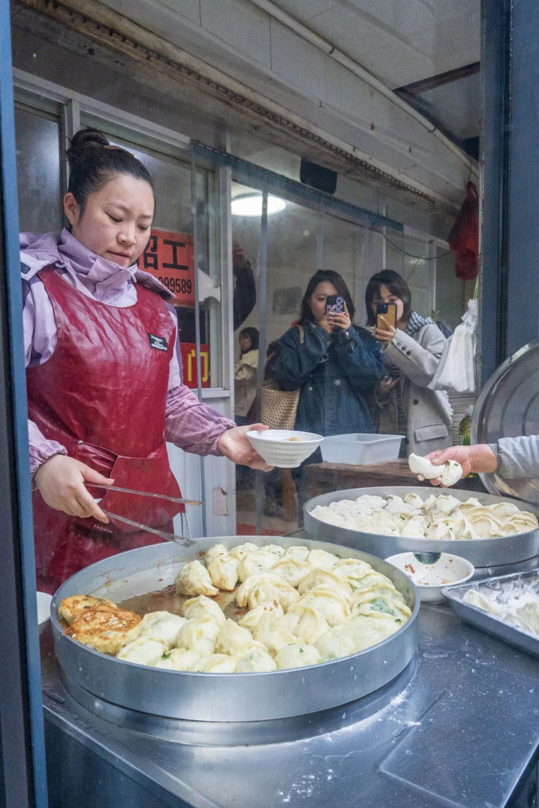 老食客往往会选择再来一碗浓稠醇厚的辣汤,撒上白胡椒粉,暖胃驱寒,或是配上一勺滑嫩的豆腐脑,淋上秘制的酱油酱汁,咸鲜适口。油条刚出锅时又脆又香,煎饺底壳焦脆,馅料多汁。老店老味道,价格实惠,人均6—8元就能吃得很饱。