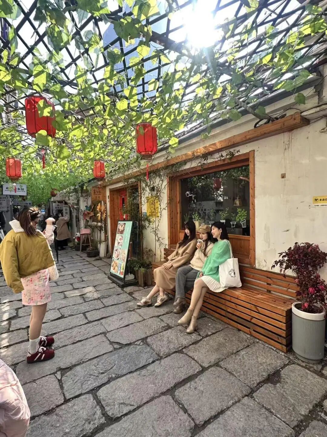 青石板路古朴整洁,白墙黛瓦间点缀着清新的绿植与复古的墙绘,随手一拍都是大片。巷弄深处,几家小众的咖啡馆、文创店错落有致,咖啡的醇香与早点的烟火气在空气中奇妙融合。