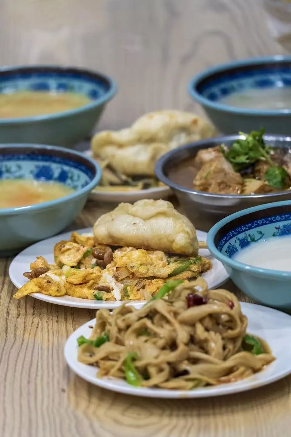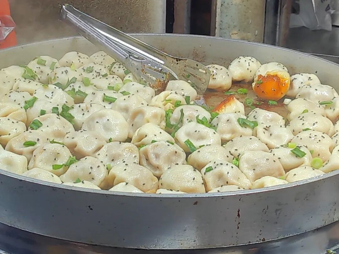 宿迁黉学街的早点主打一个“鲜”与“酥”。如果说酱豆炒鸡蛋是“王牌部队”,那么油炸包子便是绝对的“头牌”,老面发酵的面皮炸得金黄酥脆,轻轻一咬,汁水瞬间在舌尖迸发,香而不腻;水晶包子则胜在皮薄剔透,透过面皮能看到饱满的馅料,软糯鲜香。