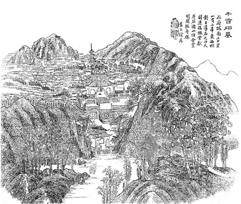 “牛首烟岚”描绘的是山间云雾缭绕、山谷空蒙幽深的美景。当年山寺林立,香火炽盛,袅袅青烟,萦于山林,满是禅意氤氲。