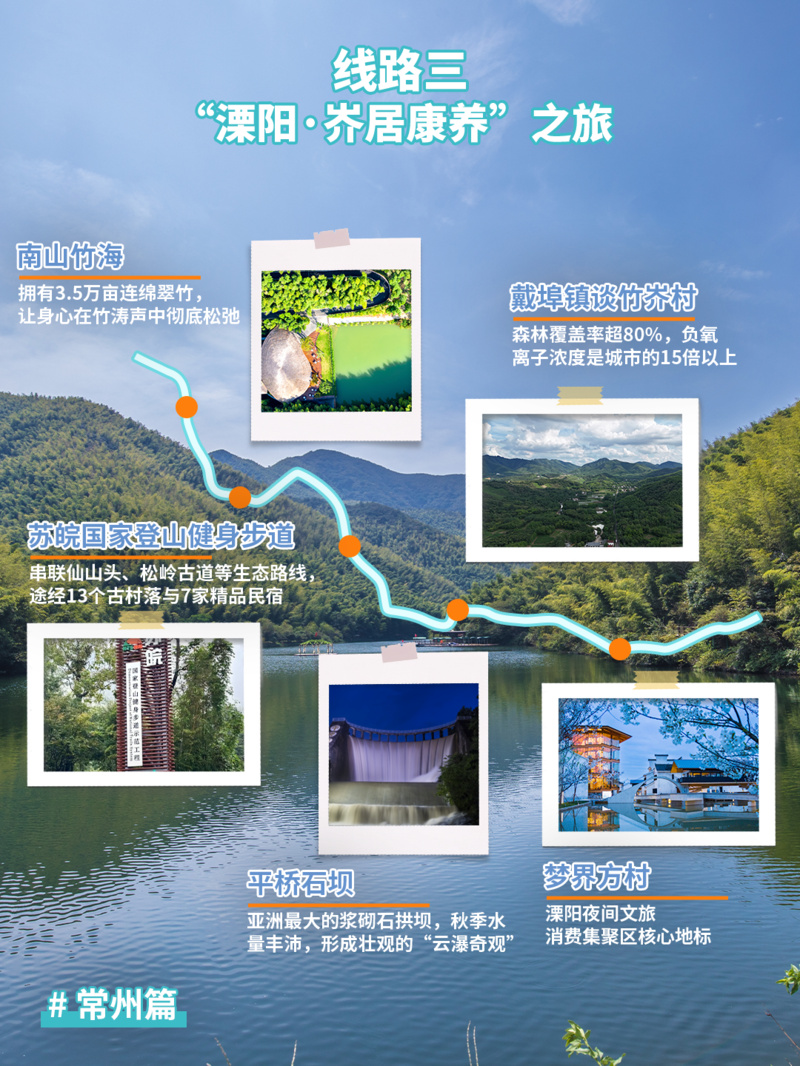 推荐点位:南山竹海→苏皖国家登山健身步道→戴埠镇谈竹岕村→平桥石坝→梦界方村