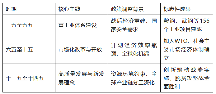 (▲中国五年规划经济发展思路转变关键节点 图源:新华国际经济学研究院)