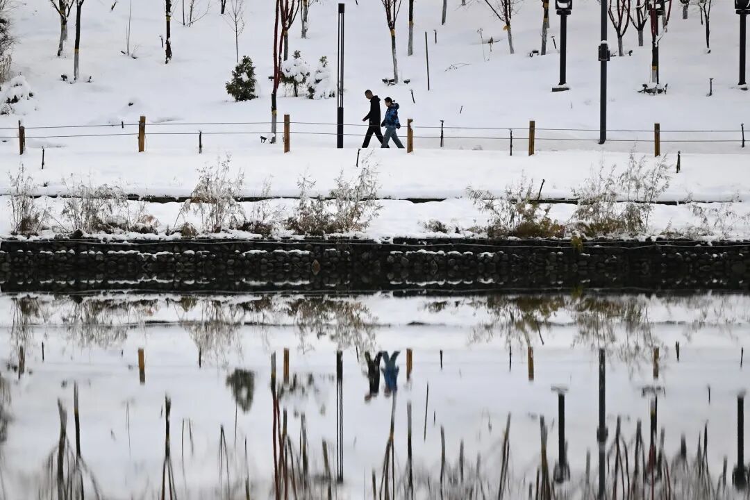 新疆乌鲁木齐市水磨沟区的一处公园雪景。新华社记者 辛悦卫 摄