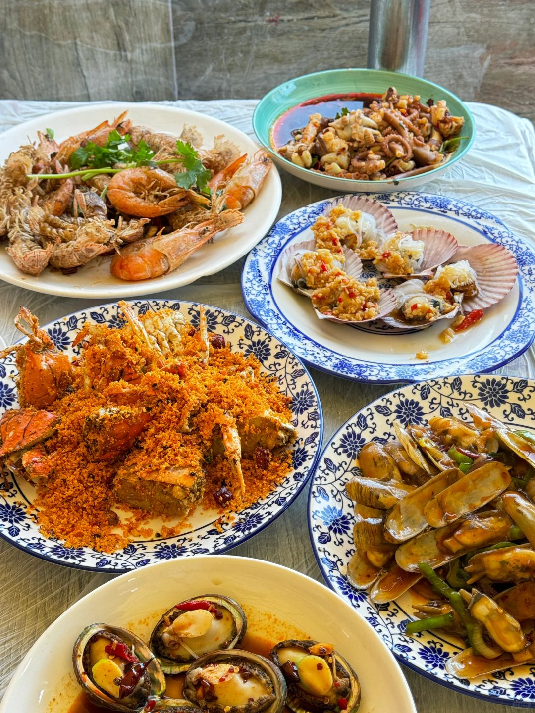 🥣特色餐饮推荐:小口白蛤蜊、梭子蟹、南美白对虾、义合生蚝、八带鱼、沙光鱼、煎饼、虾酱