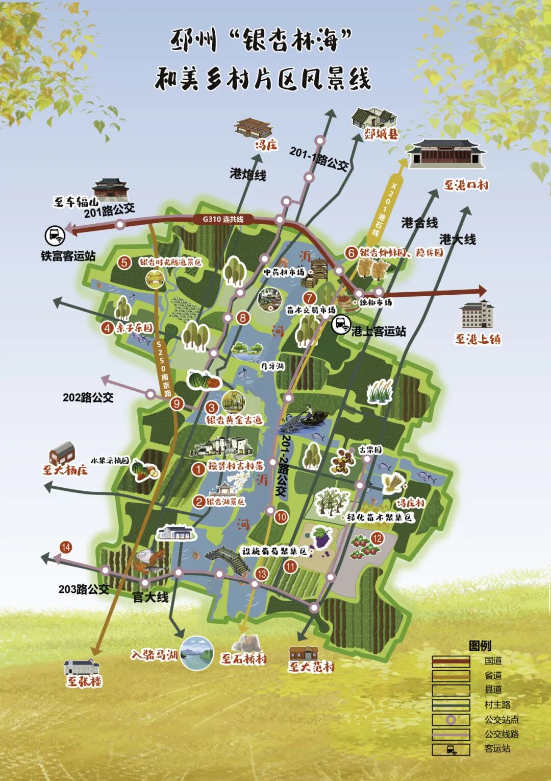 2、310国道:银杏姊妹园、隐兵园(港西居村)—苗木交易市场