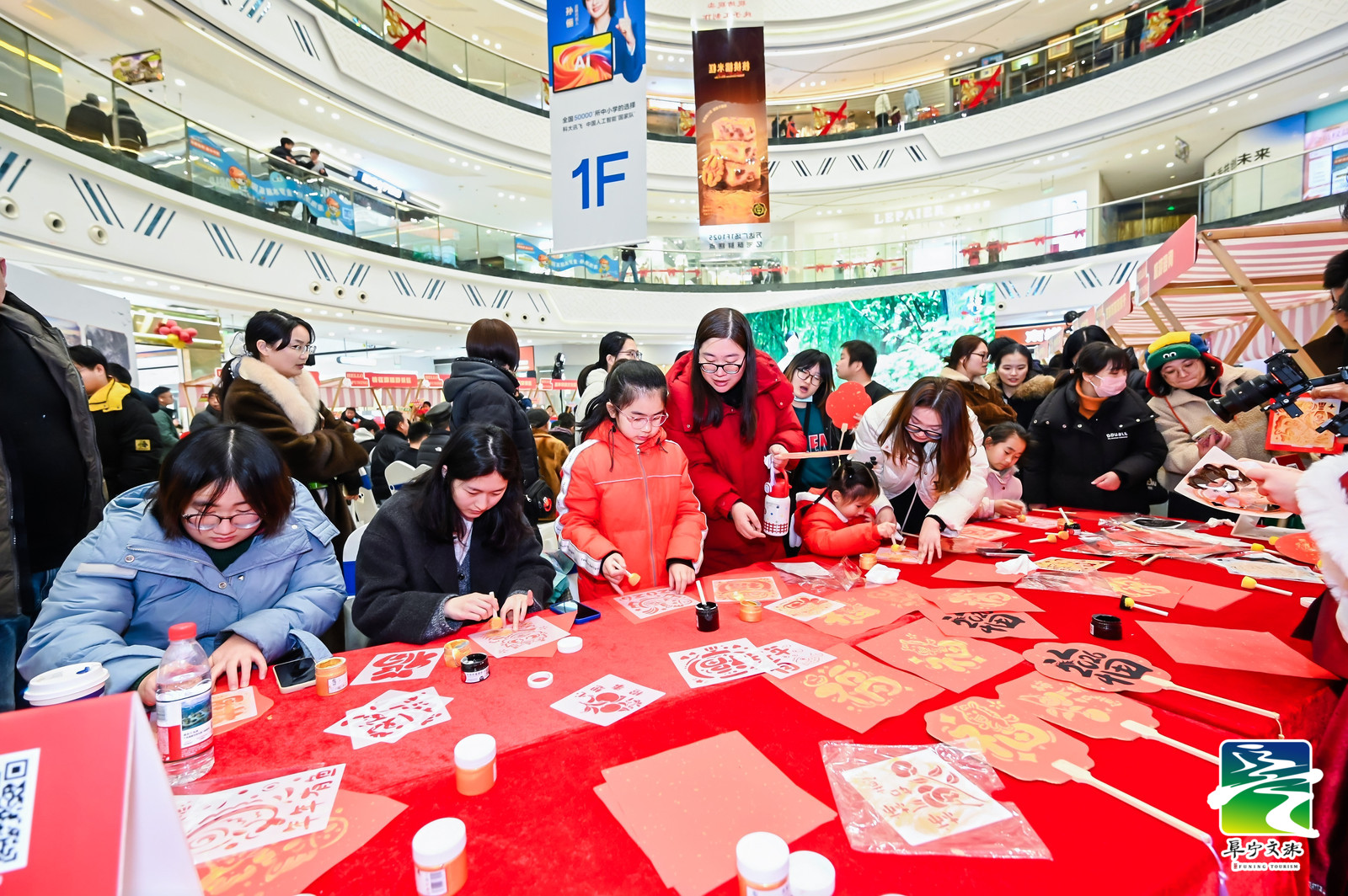 非遗展台好物云集。阜宁大糕、益林酱油、豆轶坊蒲包茶干、硕集姜氏卜页等“阜”字号非遗美食展销,吸引武进市民驻足品尝、踊跃购买,处处洋溢着喜悦氛围。市集现场还设置了丰富的文化体验项目,平添了几分雅趣。大家亲手拓印“福”字,收获新春美好祝福;一旁,阜宁文旅主题联名咖啡作为活动伴手礼,也吸引了众多游客排队领取,现场暖意融融、年味满满。