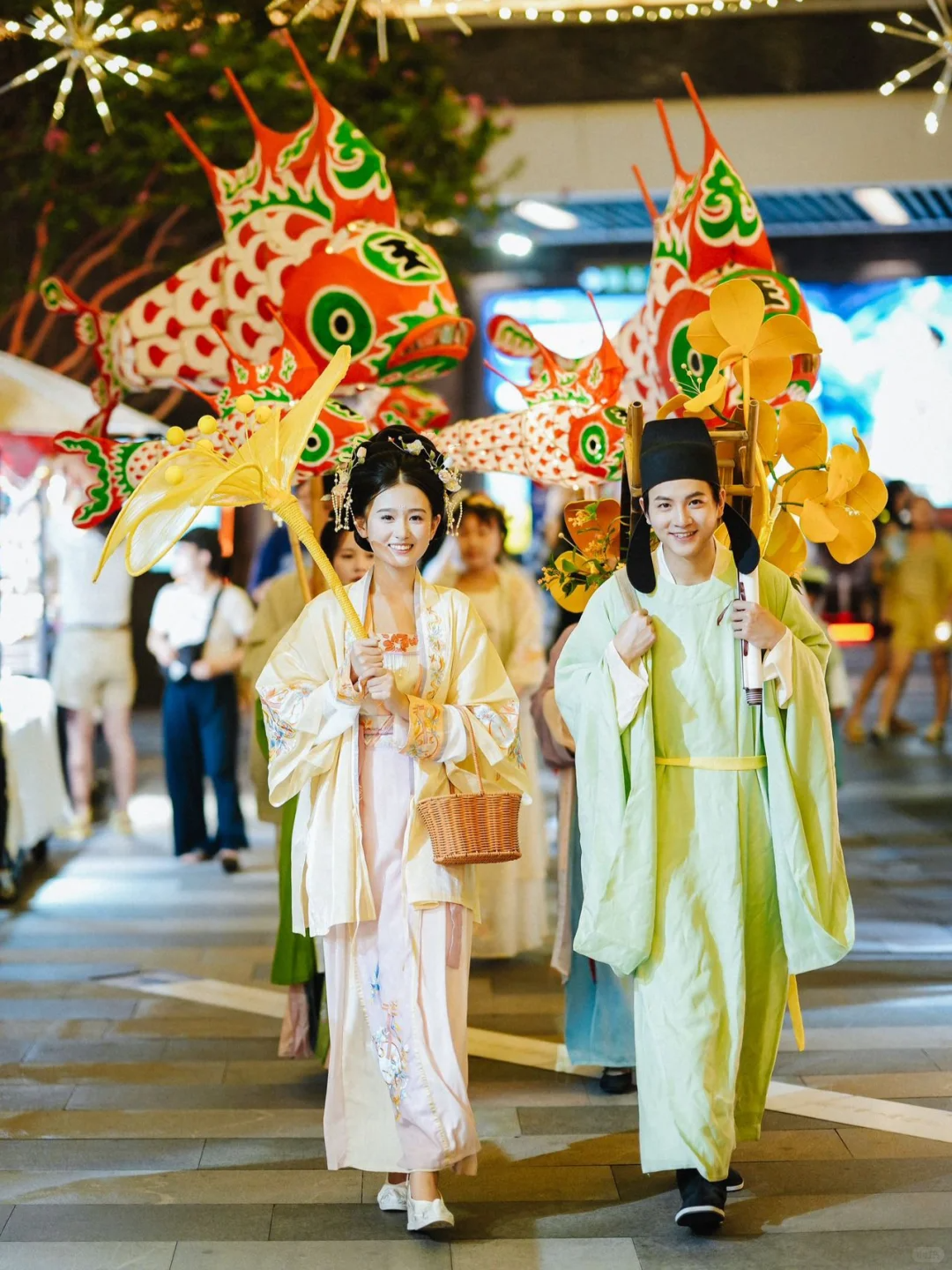 换上华服,缓缓走过老街巷子,穿越回宋朝,做一天“宋潮人”,体验宋式烟火人间!在百戏台前看鱼灯舞,在蹴鞠场上,玩转“鸳鸯拐”“流星赶月”,在市集摊位前,与卖货郎讨价还价,感受人家烟火......简直是年味天花板!