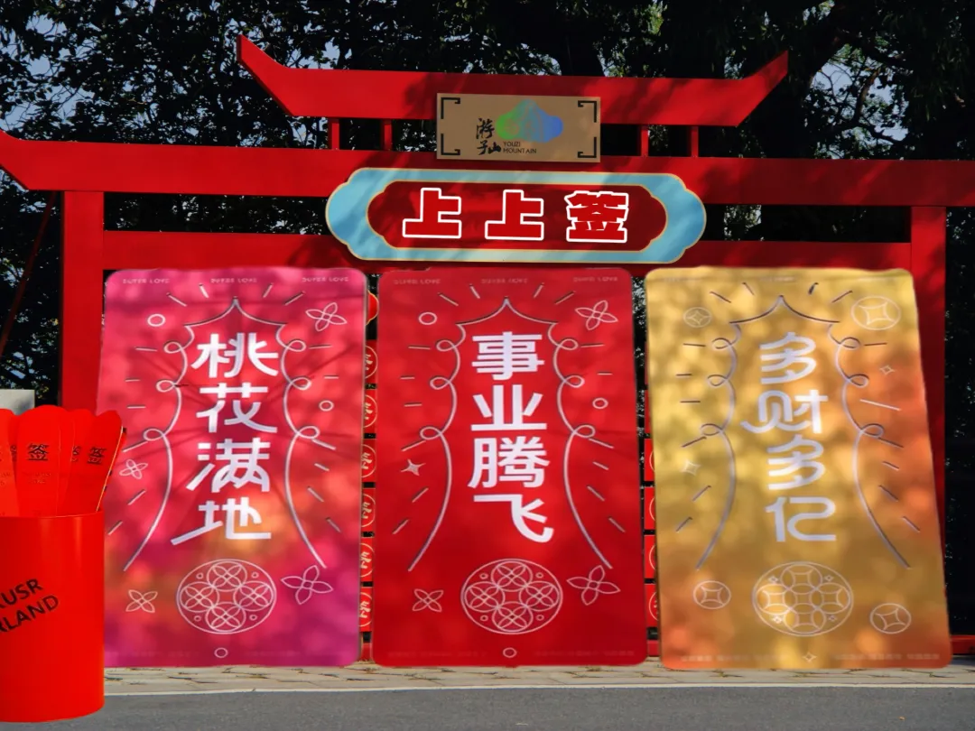 游子山更是“马力全开”!黄白黑三匹瑞马带你巡山送福,潮玩市集、国风旅拍、甚至能在仿古街吃上海底捞联名火锅!祈福开运、逛吃拍照,一站式配齐~