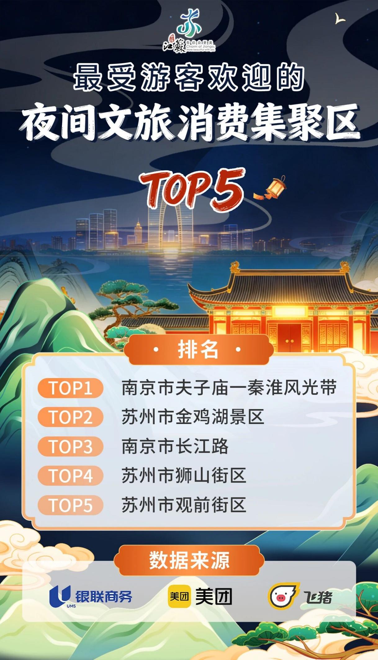 此次发布的榜单涵盖四大核心类别,清晰勾勒出江苏文旅消费的生动图景。在最受游客欢迎的夜间文旅消费集聚区TOP5中,南京市夫子庙—秦淮风光带、苏州市金鸡湖景区等凭借丰富的业态供给和浓厚的文化氛围位居前列,彰显了江苏夜间文旅经济的强劲活力;最受游客欢迎的旅游度假区TOP5中,无锡江南古运河、苏州太湖国家等旅游度假区上榜,凸显了江苏度假产品的高品质竞争力;最受游客欢迎旅游新产品TOP5中,无锡惠山古镇二期、宿迁森迪野生动物园世界等新项目脱颖而出,反映出文旅产品创新升级的良好态势;最受游客好评旅游景区TOP10则汇集了南京钟山风景名胜区—中山陵园风景区、苏州寒山寺等知名景区,体现了江苏文旅服务质量的持续提升。