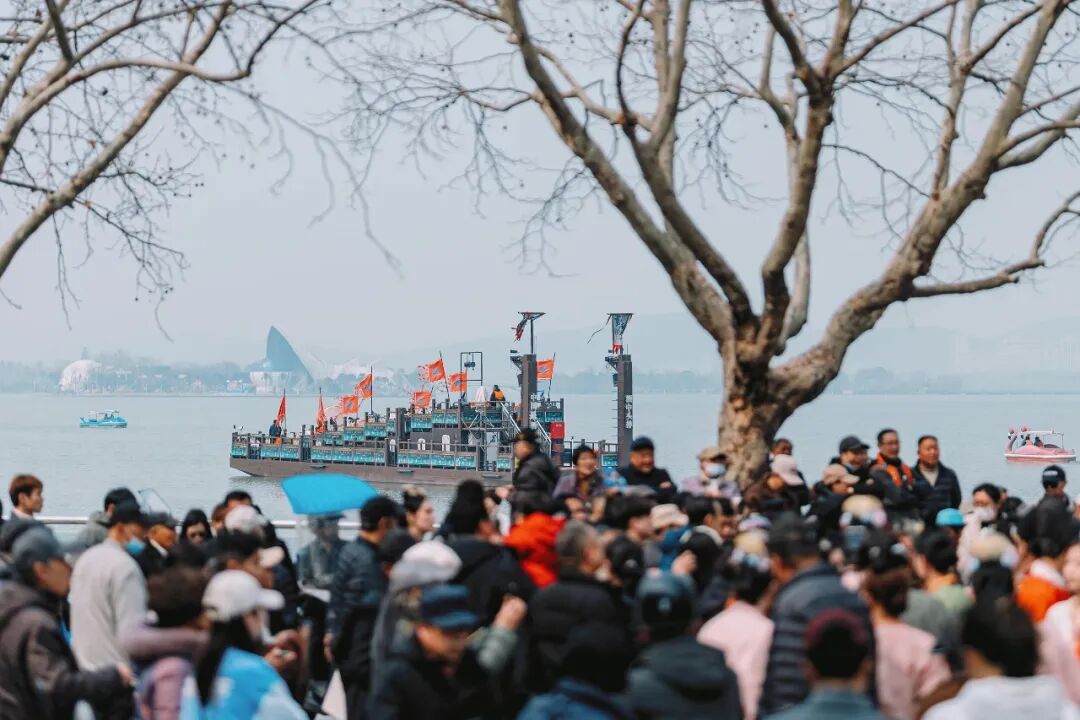 引得岸边游客纷纷驻足观赏、拍照记录