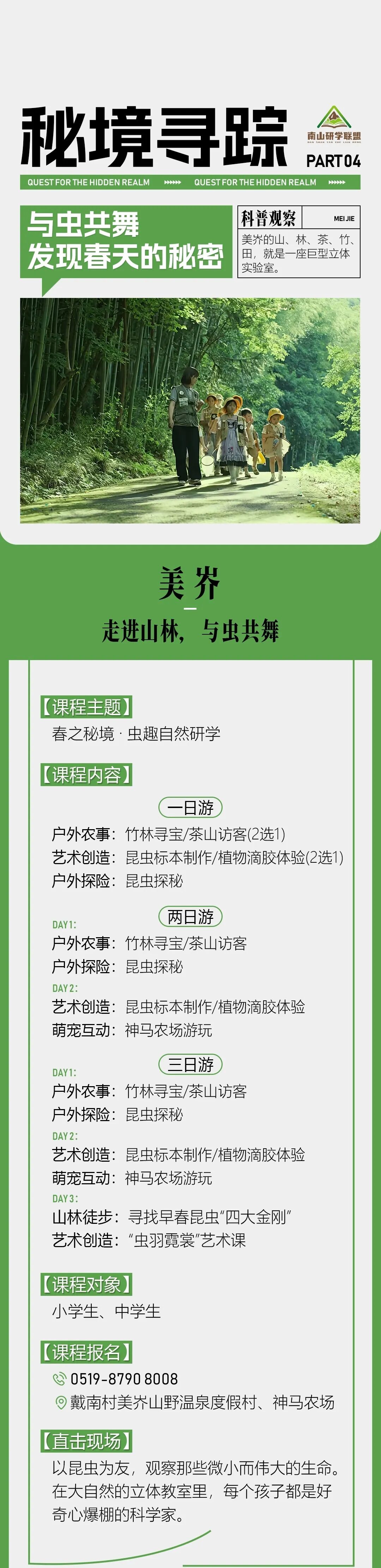 除了以上各地特色满满的春假玩法外,常州溧阳这座宝藏小城也惊喜上线专属春假研学课程。这座被竹海山野与湖光山色环抱的小城,凭借得天独厚的自然禀赋,精心打造自然探索、文化匠心、心灵原野、秘境寻踪、土地的故事、时光盲盒六大研学体系,让孩子走出课堂解锁沉浸式山野研学体验,在自然天地间汲取新知、收获成长,尽显小众宝藏目的地的独特魅力。