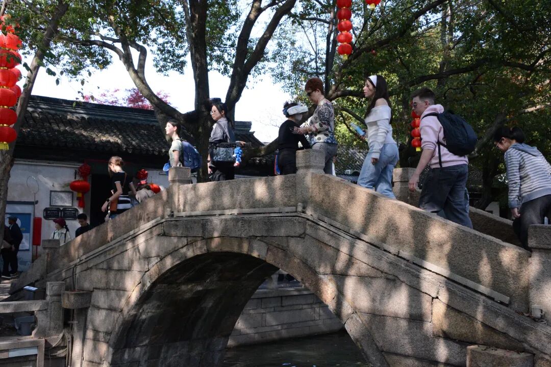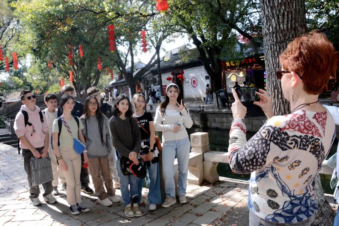 中法学生们一起穿行在古镇的弄堂间、古宅里、长桥上,感受江南水乡特色。资深的导游用生动的语言,不仅向孩子们讲述江南故事,也为远道而来的国际友人解读了吴江的文化底蕴。