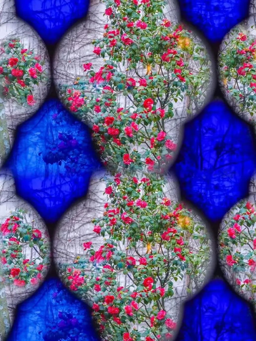 莫愁湖公园湖畔亭台楼阁的花窗,不抢春色,只作画框。海棠、紫藤,繁花贴着窗棂生长,花瓣轻拂木格,花影在窗内缓缓移动。一窗一景,具象着“莫愁烟雨”的温柔与烂漫。