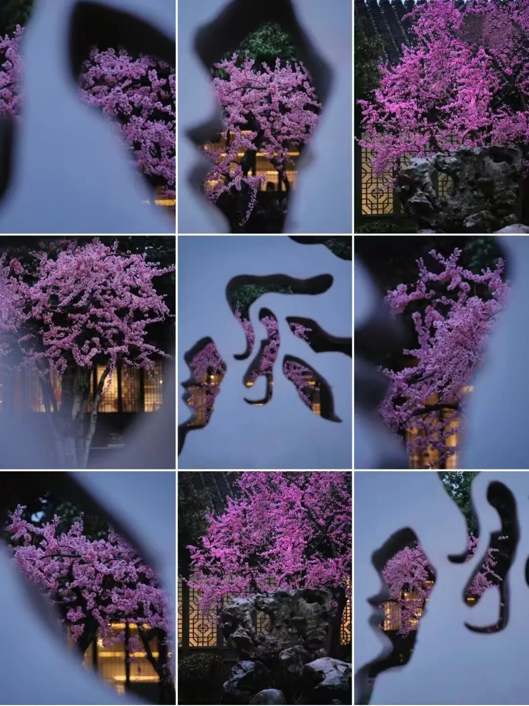 城南的愚园,以另一种姿态诠释着花窗之美。晚清时期的胡家花园中,白墙作画布,粉墙漏景若隐若现,粉色美人梅在春风中摇曳,宛如一幅意境悠远的中式水墨画。