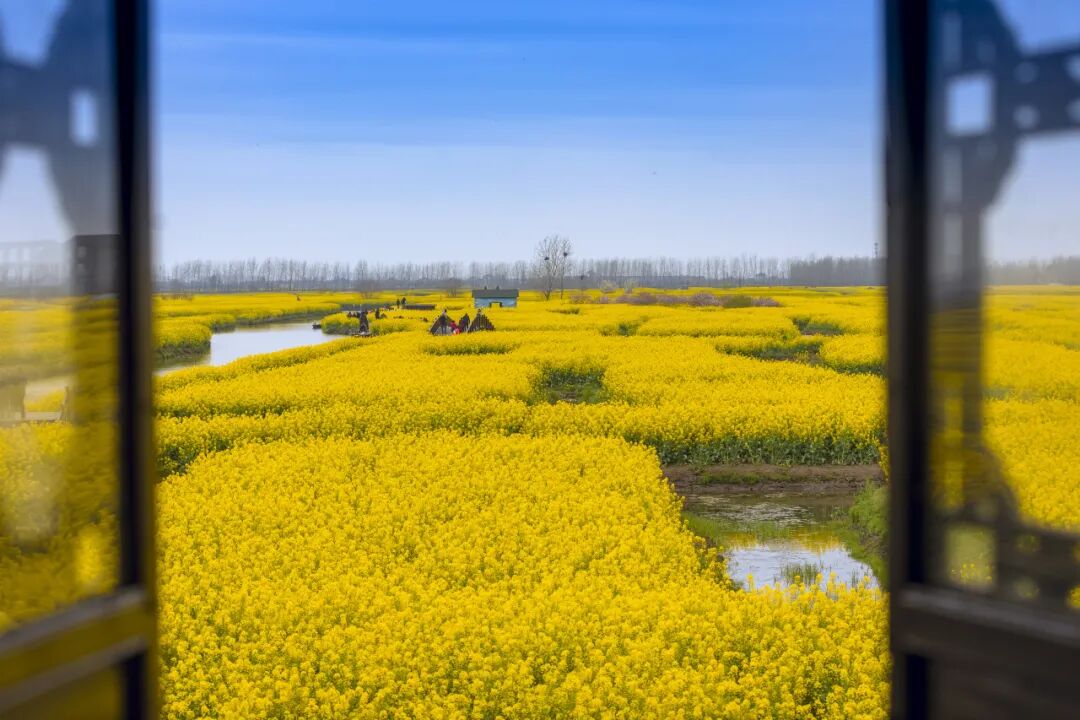 盐城、泰州的花窗,则藏着里下河的质朴春意。这里的花窗少了繁复雕饰,多是简洁的木格、砖雕,搭配着乡野的油菜花、蚕豆花、桃花,推开花窗,风带着花香涌进窗内,是最治愈的乡野春光。