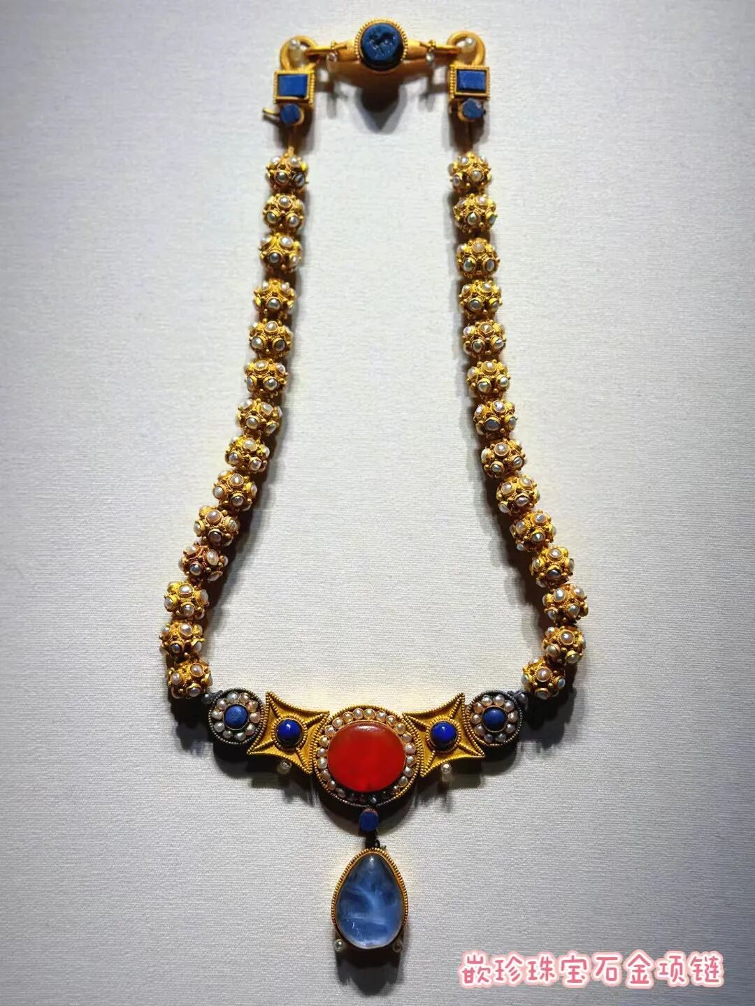 嵌珍珠宝石金项链 中国旅游报记者 邓敏敏 摄