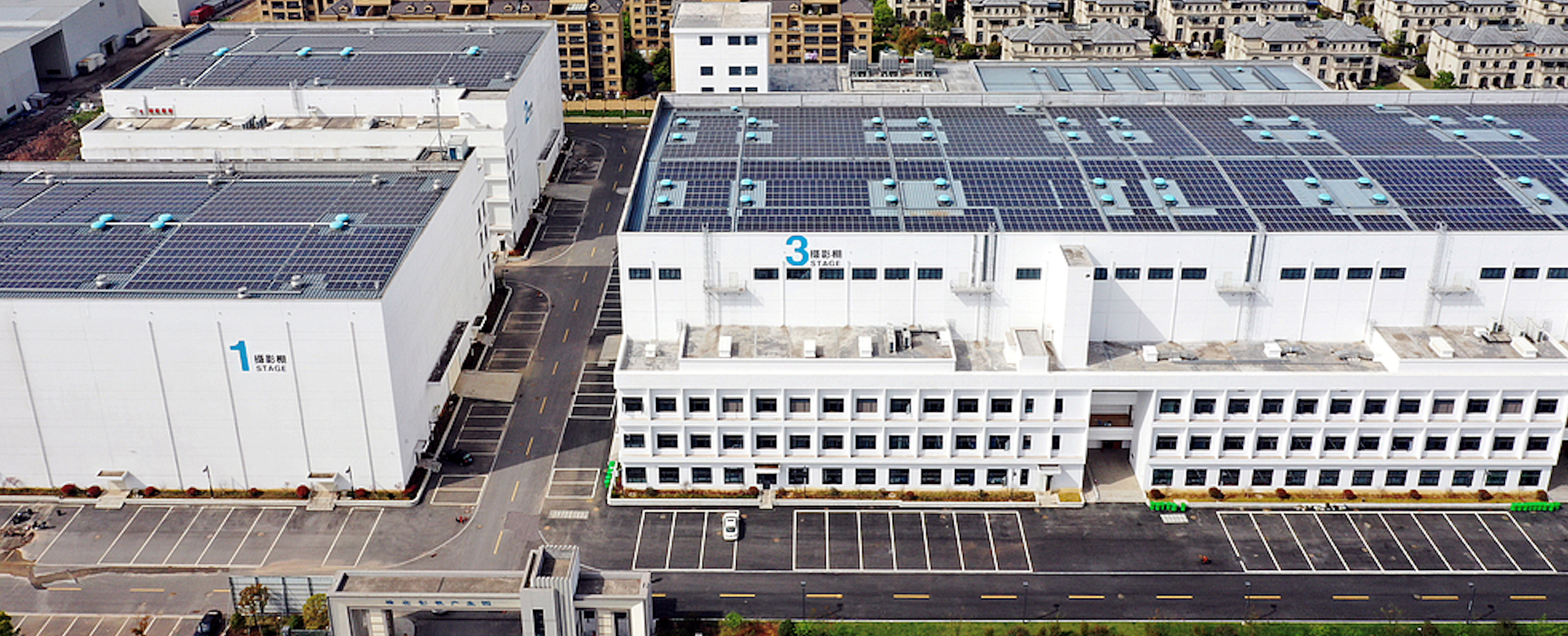 除了充满复古风情的实景街区,影片中航天学校训练厅、能量块维修区、隔离舱等充满未来感的场景,则在影视产业园内的13个高科技摄影棚内搭建拍摄。