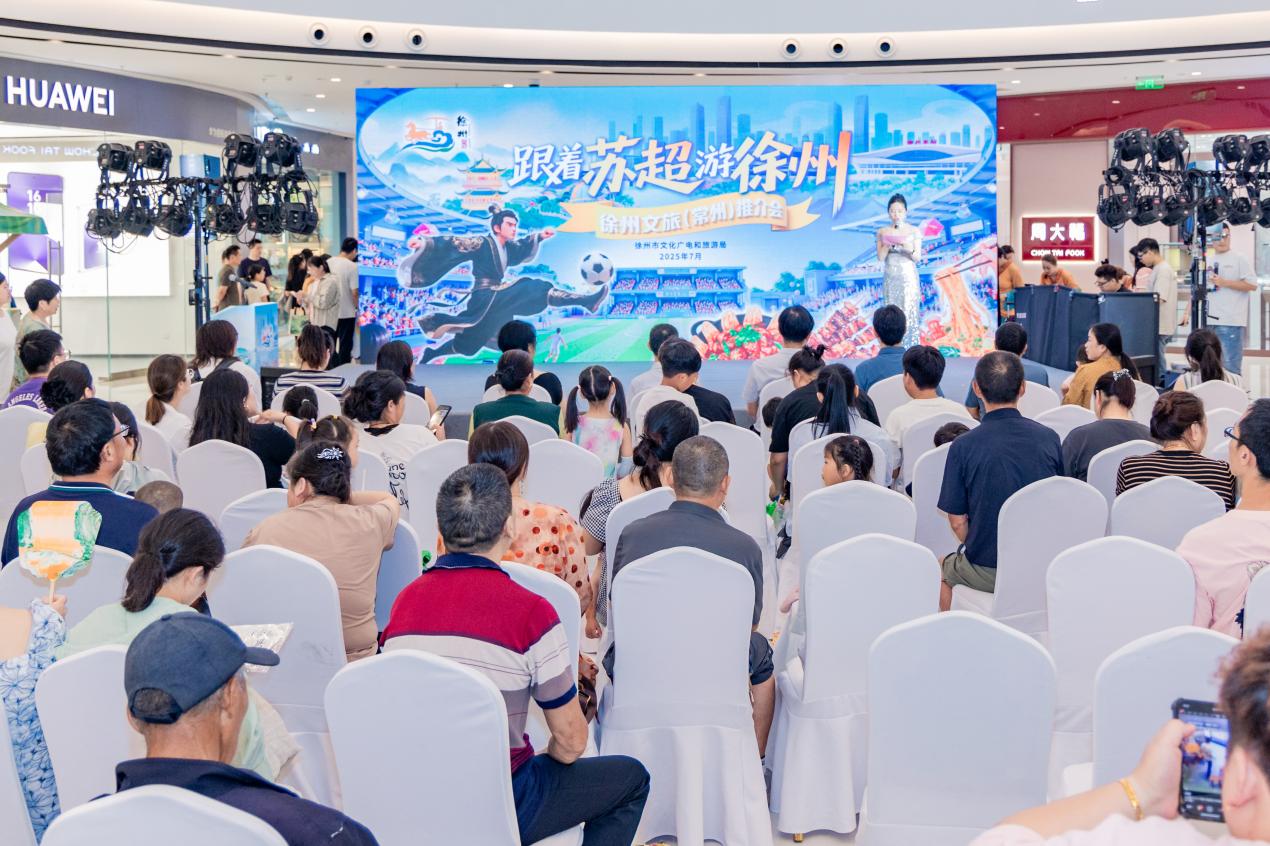 实现了“主场赛事”与“客场推介”的双线联动、互为支撑。城市的推介活动从5月持续至9月,每场推介活动持续两天,首日于商场吸引市民,次日直接深入“苏超”当地赛区现场,针对观赛球迷进行精准二次推介,将徐州文旅宣传无缝嵌入赛事场景之中。