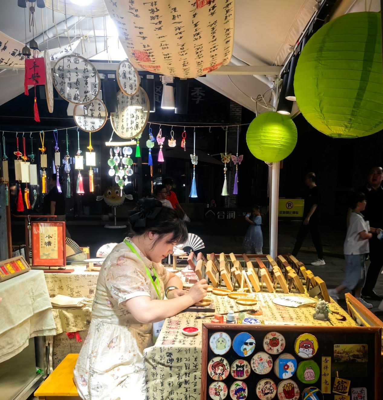 差异化布局三大主题市集。西津大市聚焦非遗手作与网红小吃,集聚近百摊位形成文旅消费枢纽;赛珍珠夏月集深度融合文化IP,本土主题文创占比超60%,配套露天影院与苏超赛事转播;京畿解压集瞄准青年群体,以原创手作、微醺酒咖、音乐互动释放夜间消费潜力。联动商家惠民政策,推出穿旗袍享7折、消费赠礼等50余项专属优惠,实现文化展示与消费转化双向赋能。
