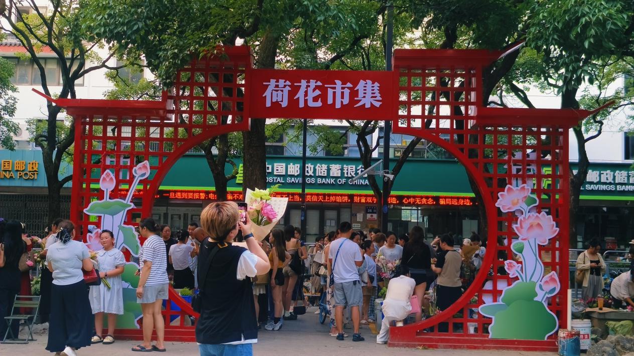 近年来,姑苏区扛起“保护好、挖掘好、运用好”的职责使命,力推人文与经济互促共进,聚焦“文旅融合高质量发展”目标,着力破解传统文旅场景单一、文化传播形式固化等问题,以在地文化元素为纽带,探索文旅融合新路径。荷花市集正是在此背景下诞生,依托白塔西路市井空间,深挖古城深厚的水乡底蕴与江南“赏荷、采荷”民俗文化,构建集花卉展销、非遗体验、特色餐饮、休闲消费于一体的综合性文旅场景,创新打造“看得见风景、品得到文化、带得走记忆”的沉浸式体验模式,既唤醒了市民对江南文化的集体记忆,又为古城文旅消费注入新活力,成为2025年全国夏日文旅顶流IP。