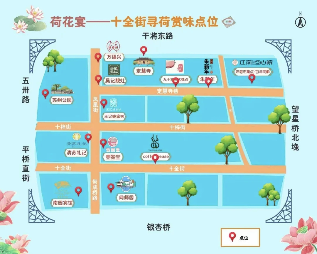 2.打造全链条体验,丰富业态供给。在旅游体验上,推出“‘荷’日君来”赏荷线路,串联拙政园、虎丘湿地公园等景点,融合园林赏荷、荷花宴、荷花手摇船体验,构建“游、赏、品、作”全链条消费场景;在产品开发上,整合苏州灯彩、桃花坞木版年画等非遗资源,推出荷花灯、荷花酥等百余件主题文创与美食,推动非遗技艺与现代消费需求精准对接;在空间营造上,将白塔西路、观前小公园打造成“荷香满街”的沉浸式街区,清晨6点的市集荷香四溢,还原江南水乡的市井诗意。