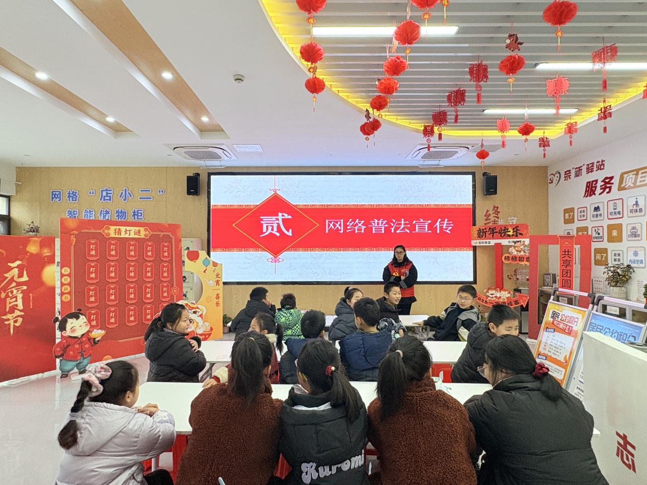 元宵花灯映团圆,法治护航伴同行。为进一步弘扬中华优秀传统文化,丰富辖区居民精神文化生活,切实提升群众网络安全防范意识,2026年3月3日上午,三水街道在姜陈社区一楼大厅开展“喜乐庆元宵 普法护万家”元宵节主题活动,将网络普法宣传融入民俗体验与亲子互动之中,吸引众多亲子家庭踊跃参与,在欢声笑语中营造文明上网、依法上网的浓厚氛围。