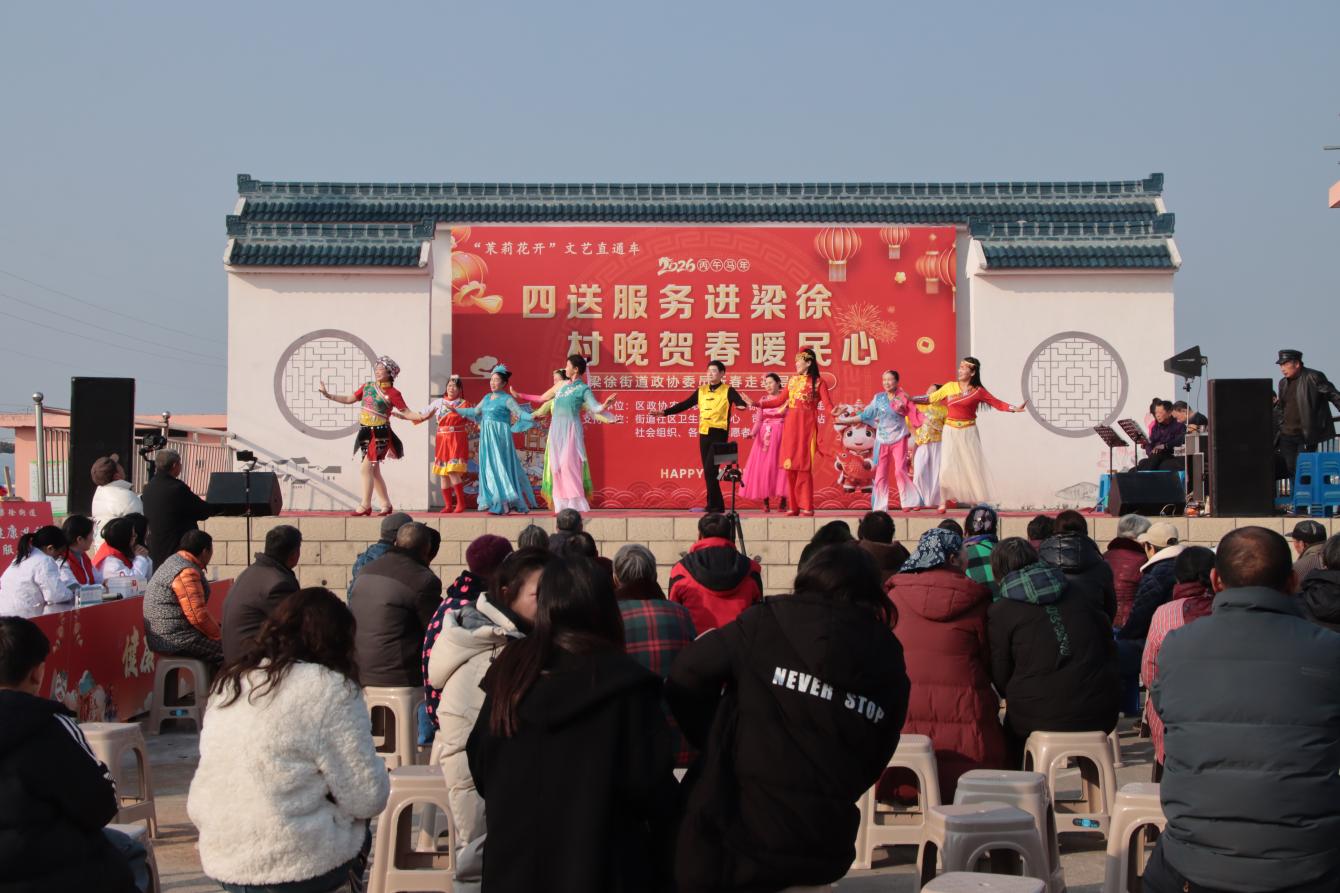 近日,“茉莉花开·村晚贺岁暖新春”主题活动在泰州市姜堰区梁徐街道周埭社区温情开展。一场集文艺演出、政策宣传、文化惠民、新春慰问于一体的新春盛宴,让辖区群众在家门口尽享浓浓年味,切实提升了群众的安全感、获得感与幸福感。
