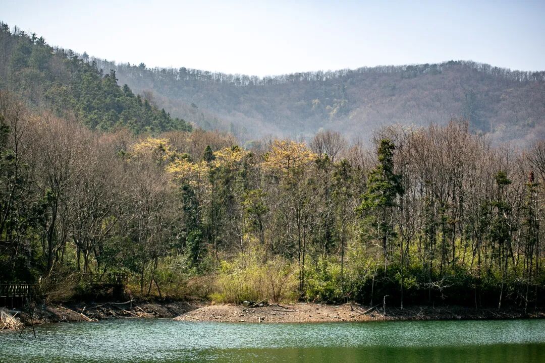 茅山森林世界镜湖畔,水岸北竹林栈道处观赏最佳