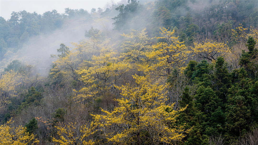 檫木已率先在枝头开出一簇簇金黄的花儿,