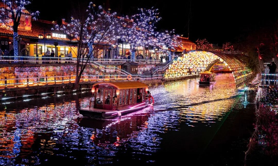 窑湾古镇深度活化千年运河与商帮文化,修复古镇风貌,创新推出水上《运河画卷》、实景马战表演《巾帼英雄梁红玉》等演艺活动、NPC互动趣味体验活动。
