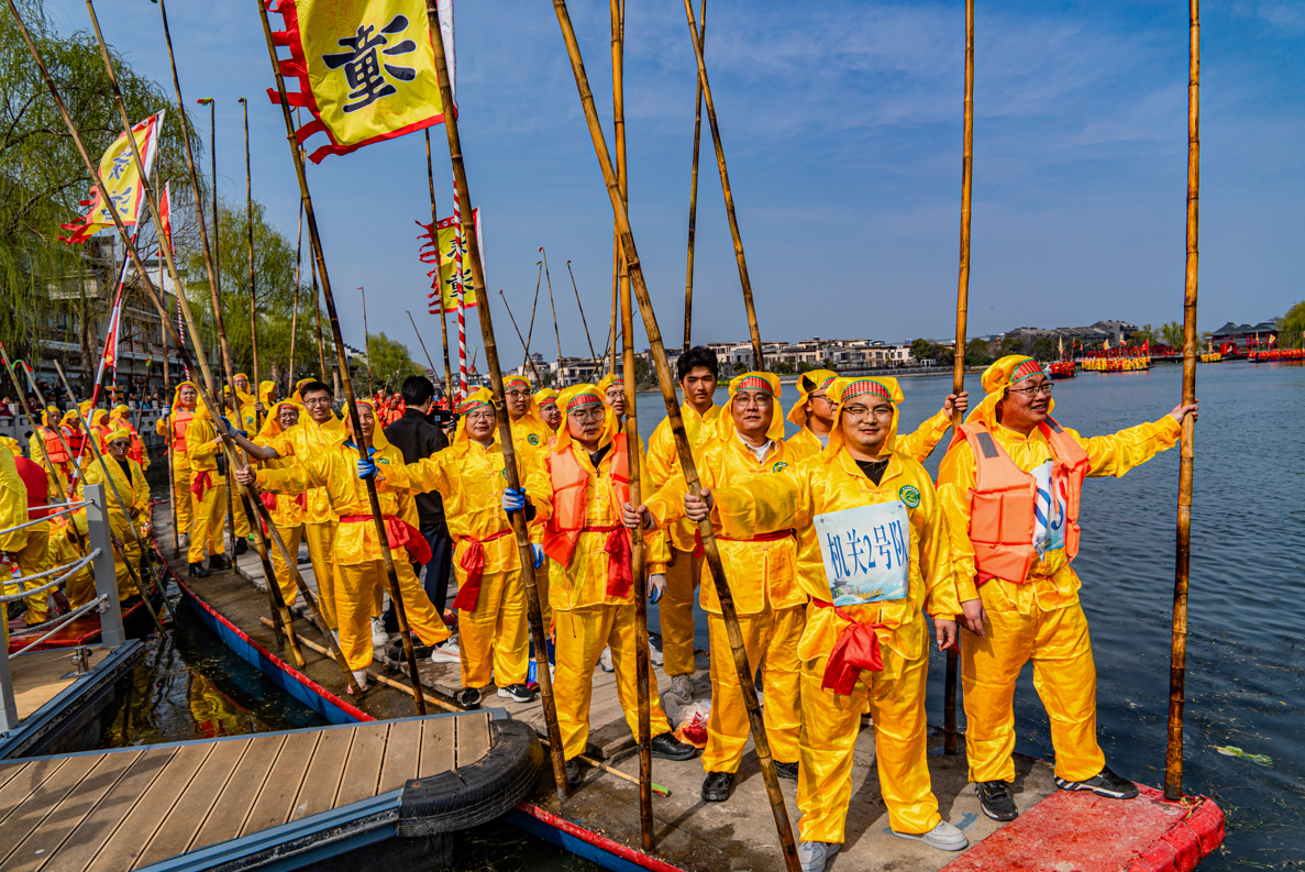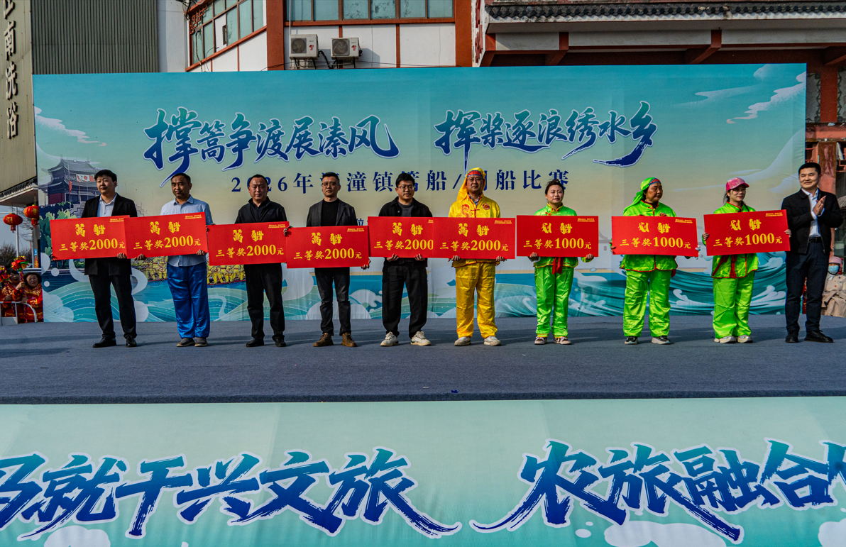 春风送暖润溱湖,桨篙逐浪竞风流。3月26日,泰州市姜堰区溱潼镇2026年篙船、划船比赛在会船大桥点将台北侧水面正式开赛,百舸齐发、逐浪争先,点燃了水乡春日的激情。本次活动以“撑篙争渡展溱风 挥桨逐浪绣水乡”为主题,设置男女混合22人篙船组、女子16人划船组两大项目,采用190米直道竞速赛制,全镇各村、机关、学校代表队齐聚湖畔,踏波赴赛,共赴这场兼具竞技性与民俗味的水乡盛会。