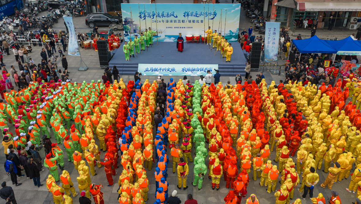 开赛之前,一场庄重的水乡祈福仪式温情启幕,为赛事注入满满期许。运动员与裁判员代表依次登台,高举右拳庄严宣誓,恪守公平竞技准则,践行奋勇拼搏精神;授篙启桨、授桨出征的古老仪式在铿锵锣鼓声中缓缓展开,唤醒溱湖古韵,点燃全场热血。随着鸣锣击鼓之声响彻湖面,号令骤起,百舸列阵、帆影齐整,静待出征——波光粼粼的湖面上,每一道坚毅的身影,都彰显着水乡儿女的豪迈;每一缕激荡的水波,都承载着奋进的力量。主会场仪式落幕後,热闹的民俗踩街紧随其后,数千名市民与游客循着鼓点,沿滨水步道有序前行、驻足观望,共赴观赛之约,沉浸式感受百舸争流的壮阔与水乡民俗的魅力。
