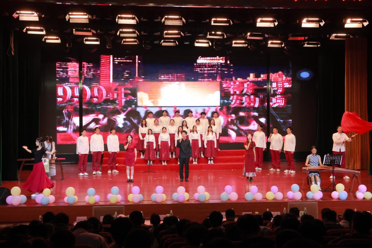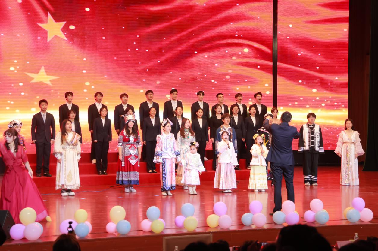 活动在一曲《国家》中拉开序幕,由学院教师与少数民族学生代表共同演唱,师生以深情的歌声传递了各族师生爱国爱家的共同心声。舞台上,同学们真情演唱《我和我的祖国》、《我爱你中国》、《中国军魂》等经典曲目,让整个礼堂沉浸在感人至深的红色旋律中。